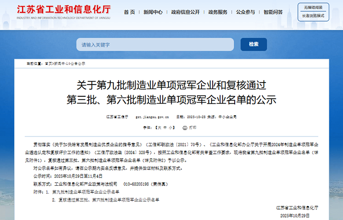 近日,江蘇省工業(yè)和信息化廳公布了《第九批制造業(yè)單項(xiàng)冠軍企業(yè)名單》,中電環(huán)保憑借核心產(chǎn)品“核電凝結(jié)水精處理設(shè)備”成功登榜,榮獲“制造業(yè)單項(xiàng)冠軍”這一國家級重磅榮譽(yù)。這不僅是對公司技術(shù)實(shí)力與市場地位的高度認(rèn)可,也是中電環(huán)保在深耕工業(yè)水處理領(lǐng)域三十年征程中的又一重要里程碑。
